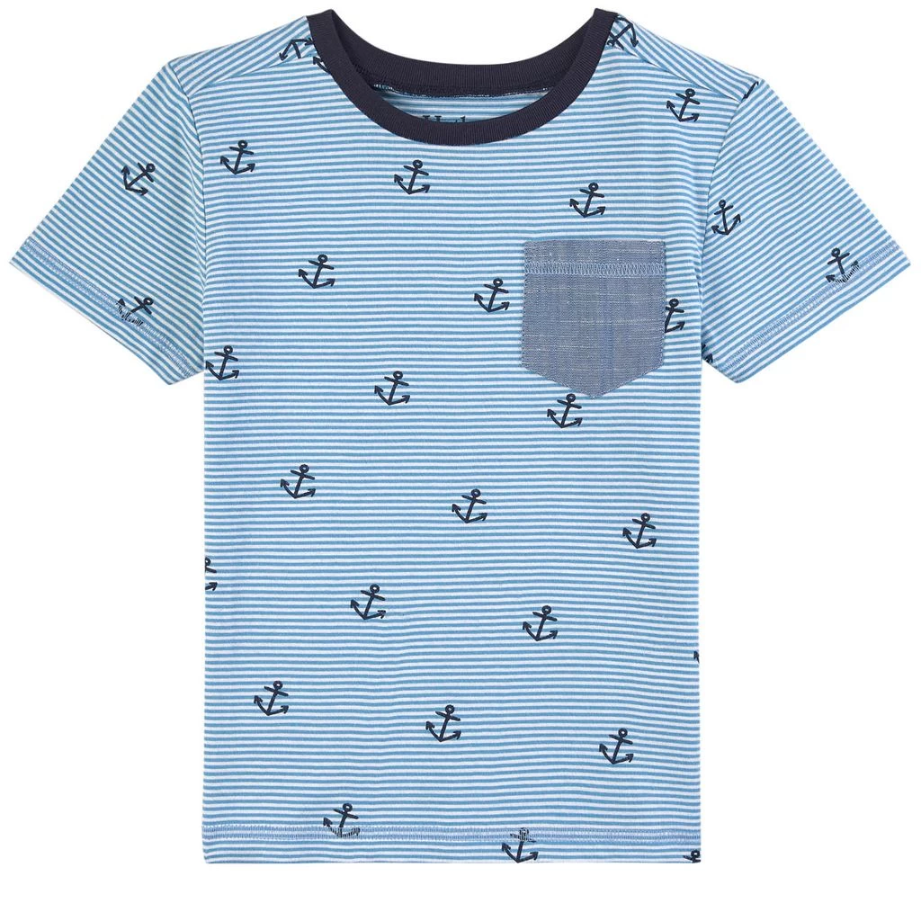 Blue Anchors T-Shirt by Hatley. The T-Shirt has an all-over print. It has a chest pocket.