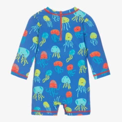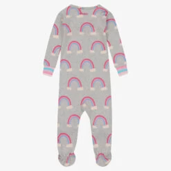 Cute navy blue long pyjamas for baby boys by Hatley, made in organic cotton jersey and designed to fit snugly. They have grey trims and a colourful construction trucks print, with khaki green logo embroidery on the back of the neckline.