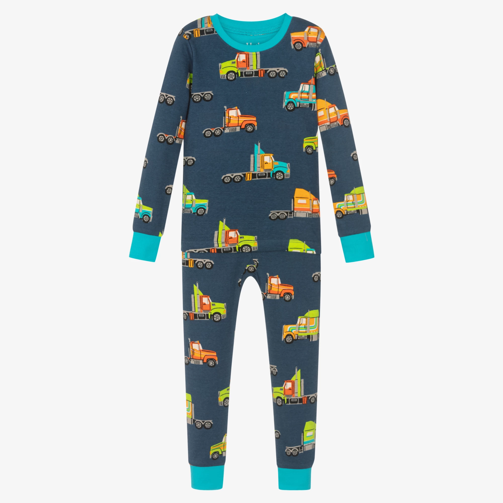 Navy blue pyjamas for boys by Hatley, printed with fun lorries and trucks. These pyjamas are made in the softest cotton jersey, with a slight stretch for comfortable wear. Ideal for relaxing at bedtime, they are safely regulated in a snug fitting style.