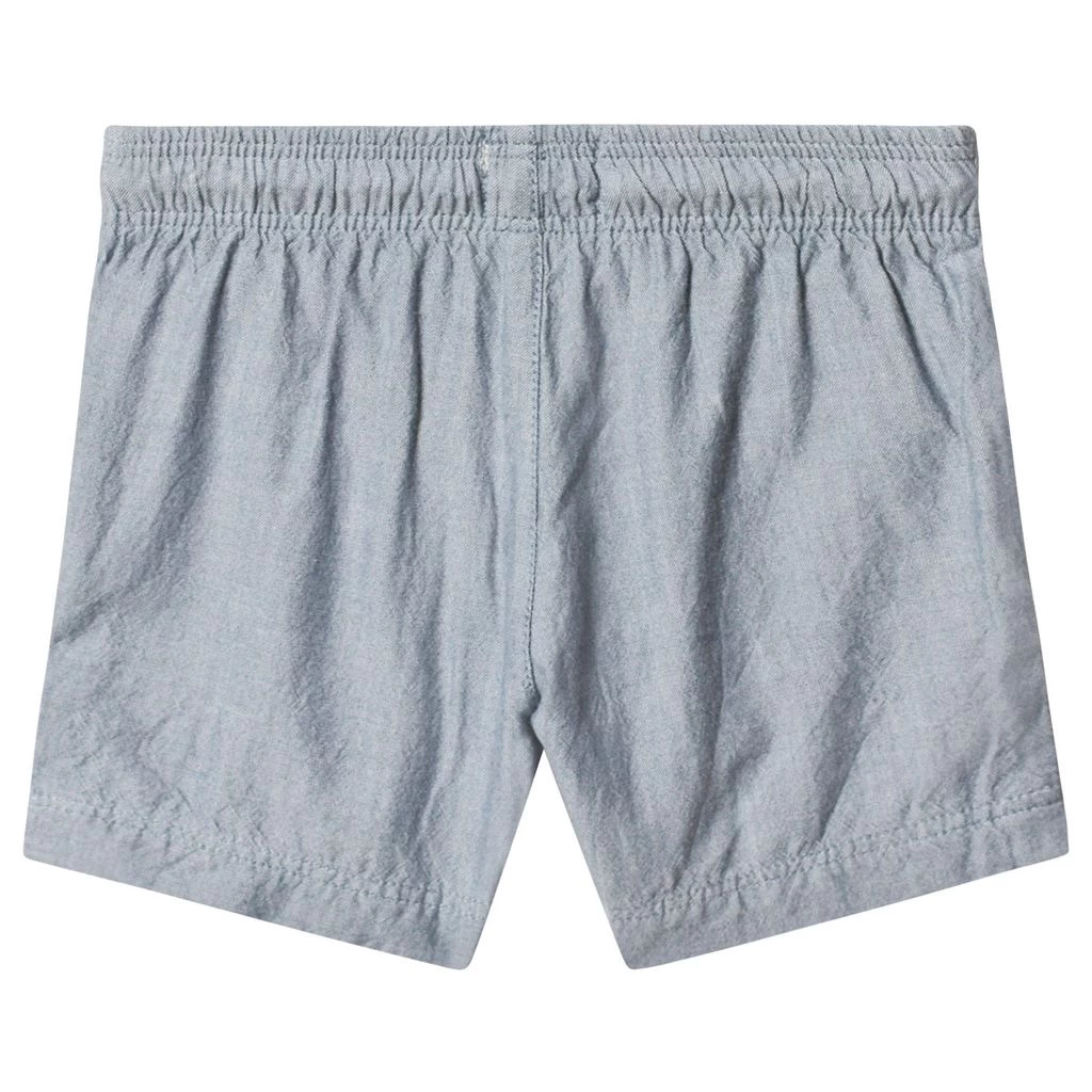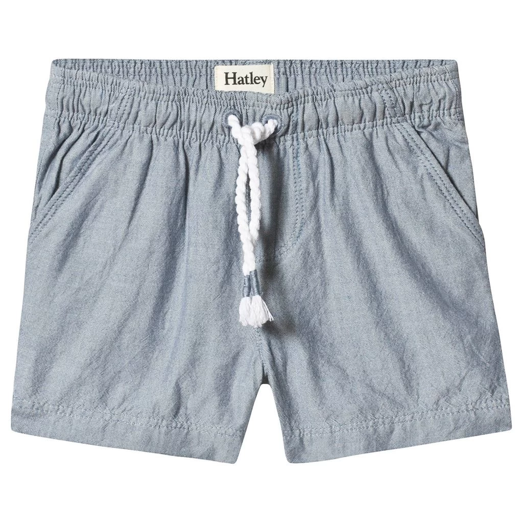 Gray Chambray shorts by Hatley. The shorts have an elasticated drawstring waist. They have two front pockets.