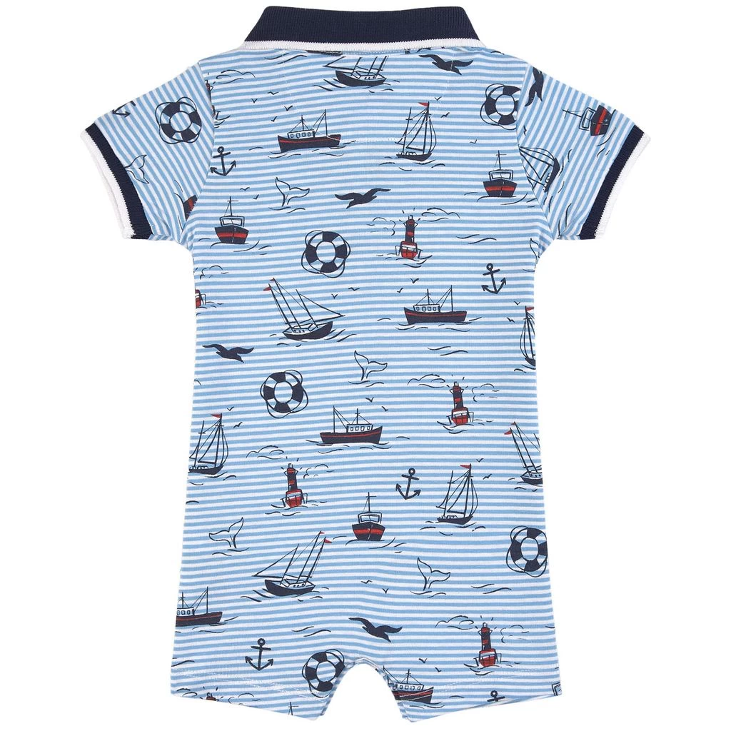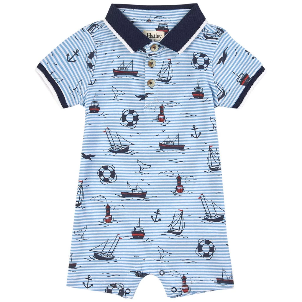 Blue Out At Sea romper by Hatley. The romper has an all-over print. It has a snap button closure between the legs and a button closure at the front.