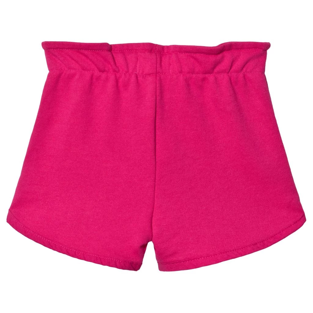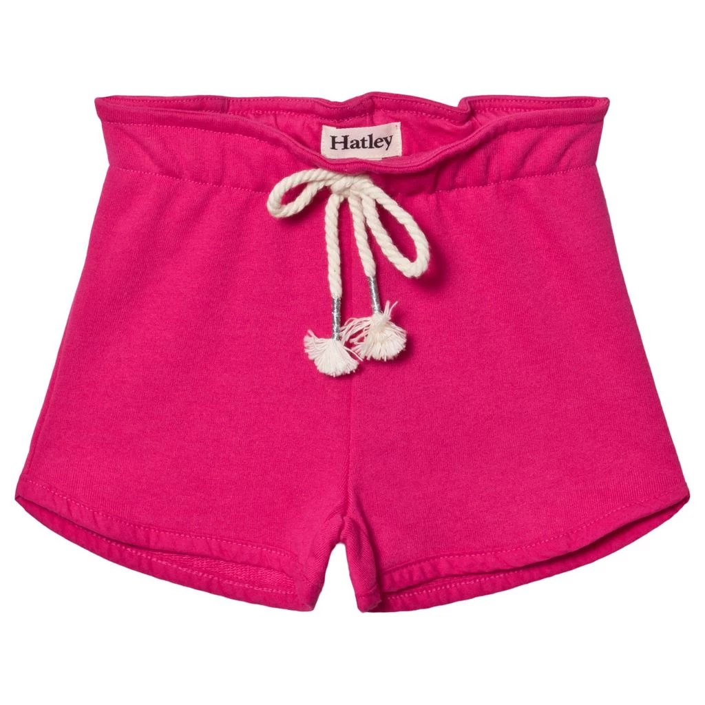 Blue Paper Bag shorts by Hatley. The shorts have an elastic waistline with a fuchsia drawstring.