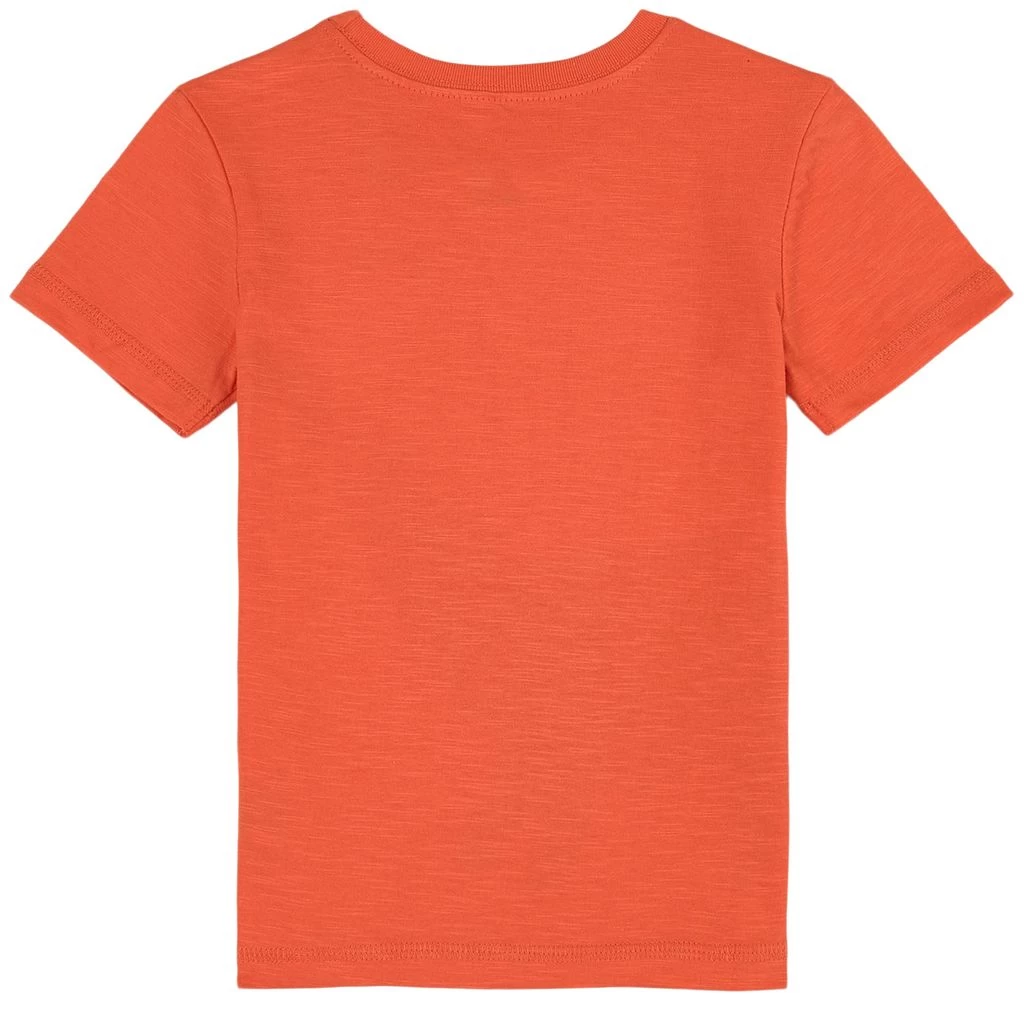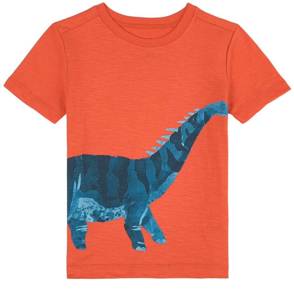 Graphic tee with a fun print!. Orange Prehistoric Dino graphic t-shirt by Hatley. The graphic t-shirt has a regular fit. It has a ribbed crew-neck.