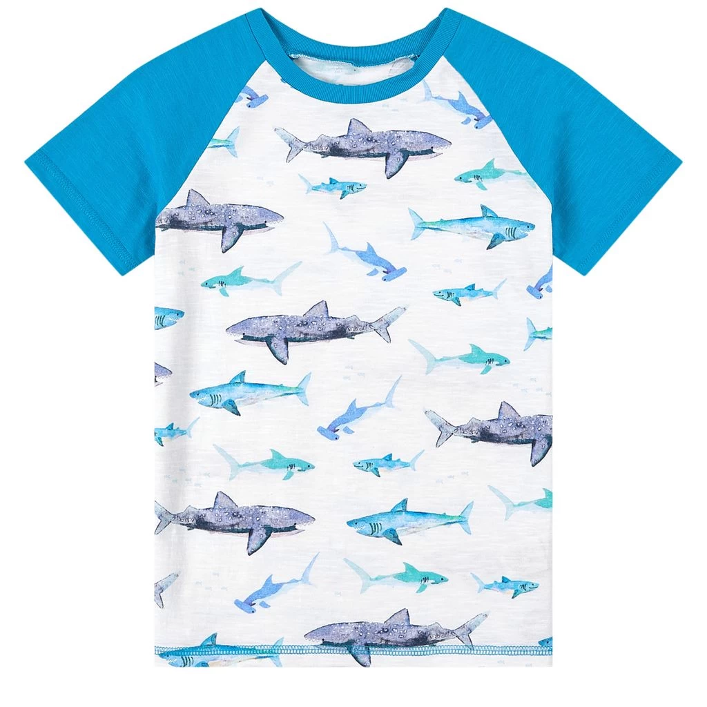White Shark Graphic T-Shirt by Hatley. The T-Shirt has a regular fit. It has raglan sleeves.