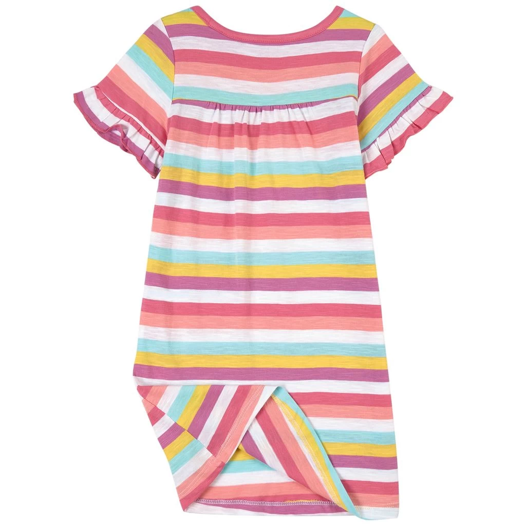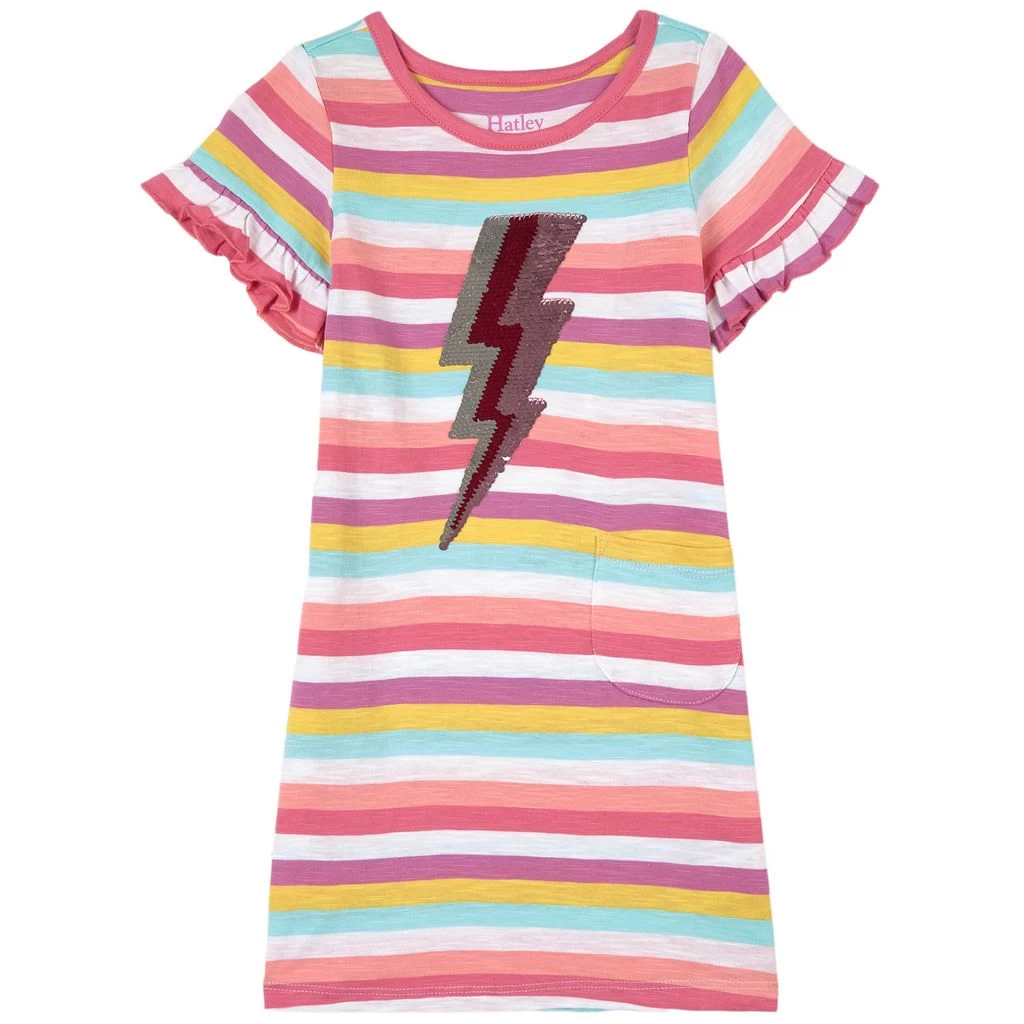 Pink t-shirt dress by Hatley. The dress has an A-line silhouette. It has reversible sequins and a front pocket.