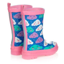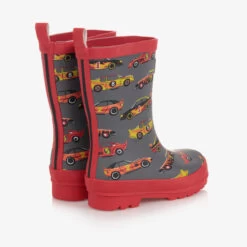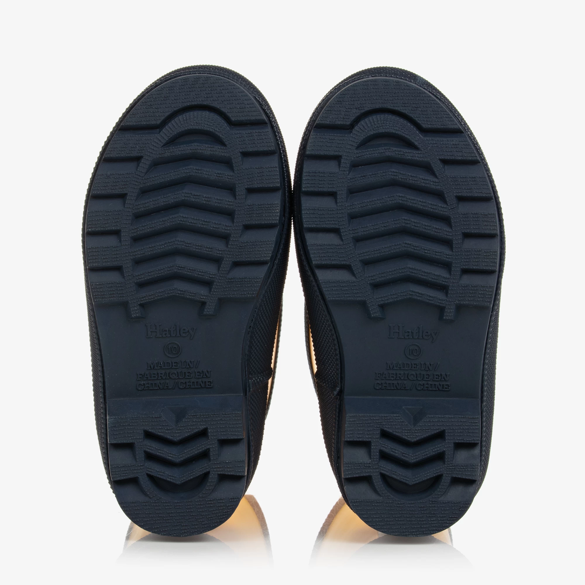 Bright yellow rubber rain boots for boys and girls by Hatley. They have textured soles for good grip and a comfortable, soft fabric lining.